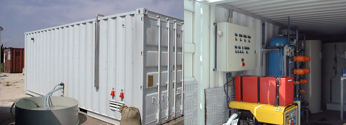 Wir konstruierten daraufhin eine Anlage, die komplett mit eigener Stromversorgung und Druckluftspeisung durch einen Generator und Kompressor in einem 20" Container Platz fand.